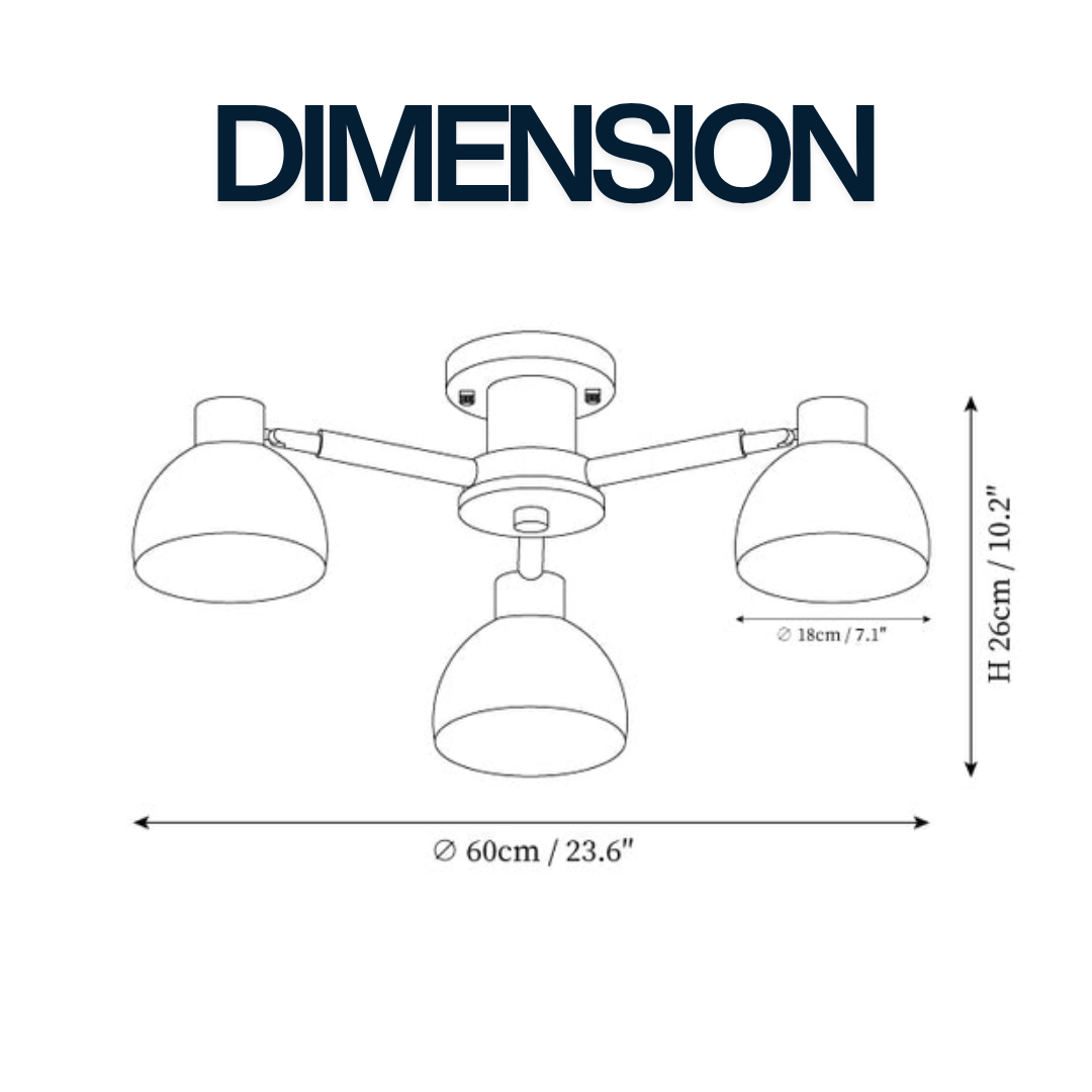 This ceiling light uses E27 bulbs (3 units), compatible with LED, warm white, neutral, or cool white bulbs.
